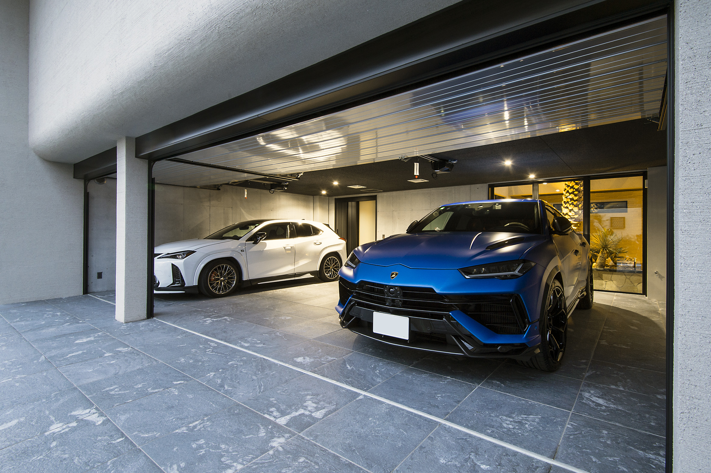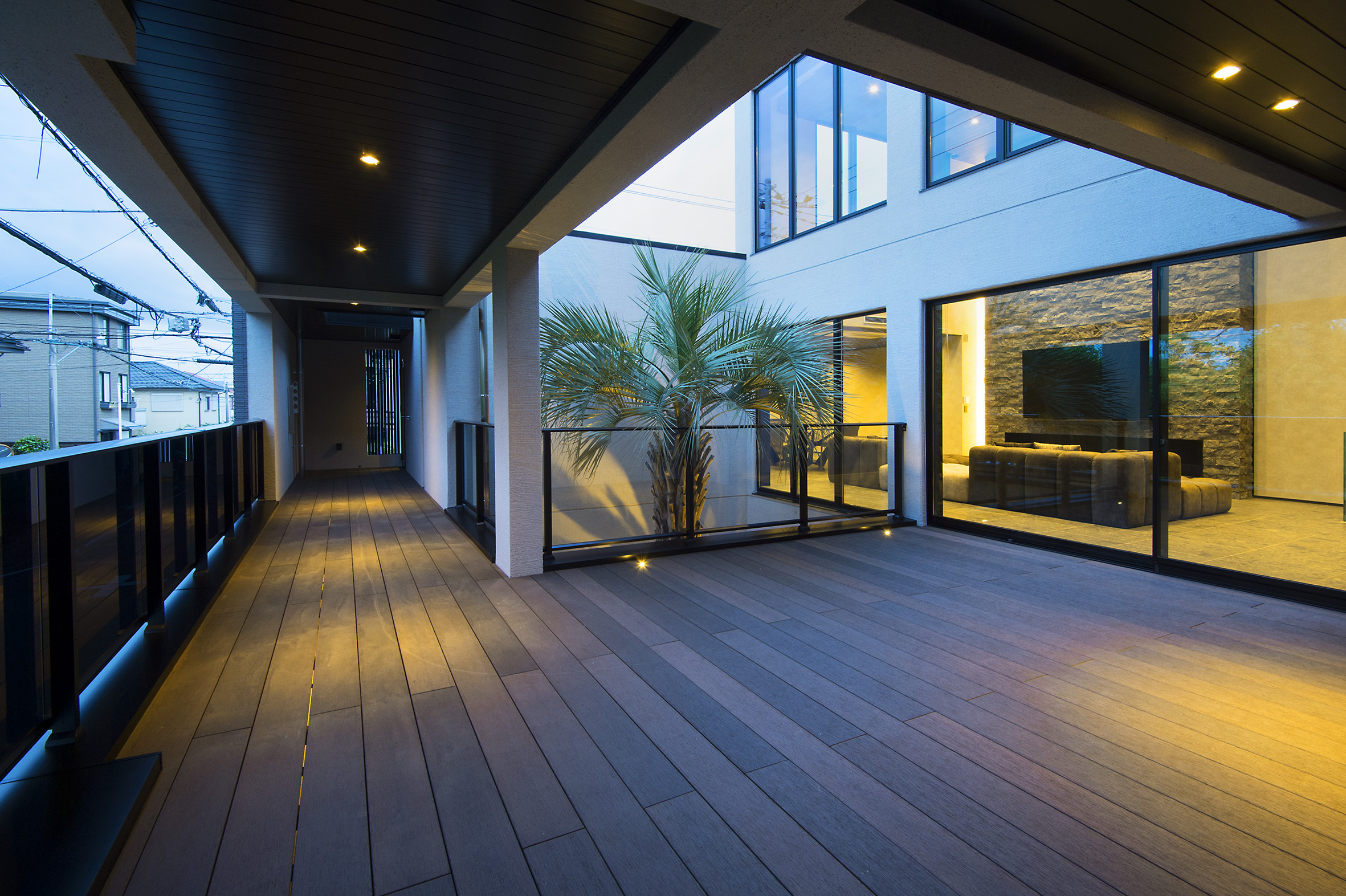 隣地側;吹付タイル